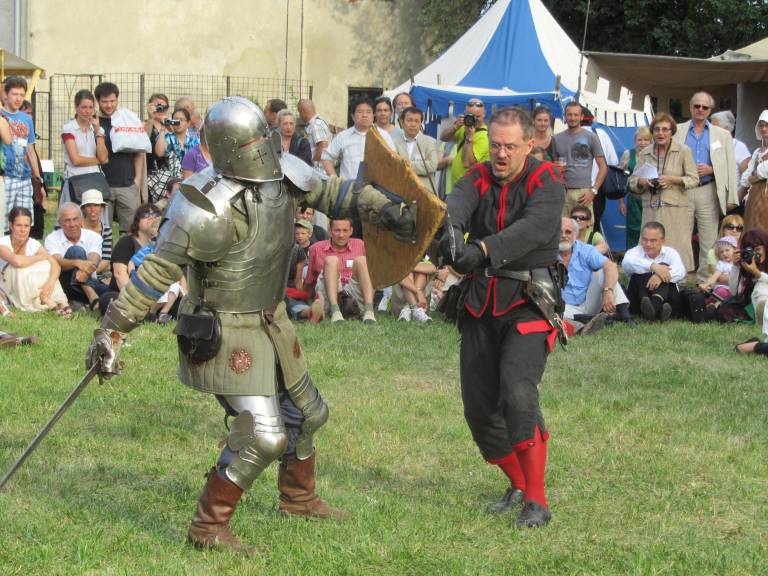 Ob 14.30 uri – predstavitev in nastopi vseh sodelujočih skupin (glasba, plesi in borbe) na turnirskem prostoru Ptujskega gradu.