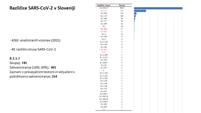 Do zdaj so v letošnjem letu v laboratorijih sekvencirali 4263 vzorcev in odkrili 40 različic virusa SARS-CoV-2. Odkrili so tudi še šest primerov tako imenovanega nigerijskega seva.