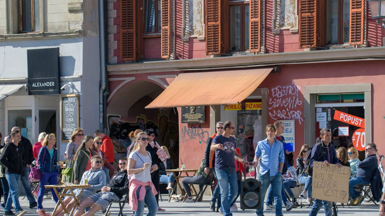 Na mariborskem Trgu svobode so se ponovno zbrali protestniki, ki protestirajo proti vladnim ukrepom.