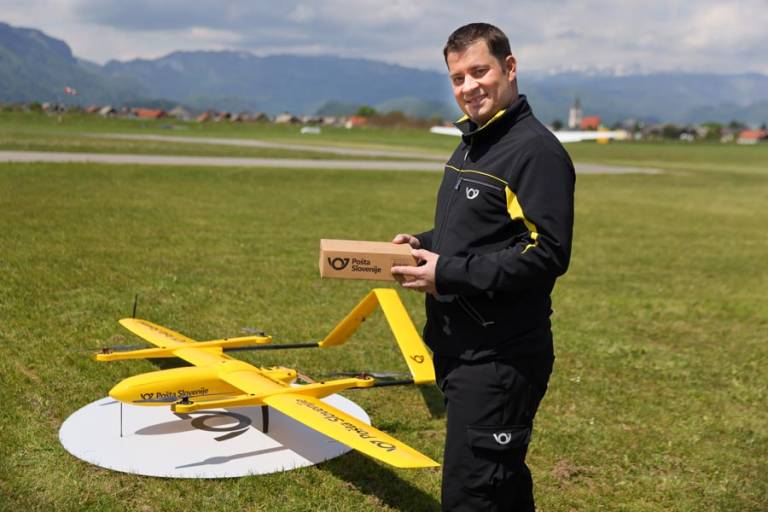 Pošta Slovenije začenja s prvimi poskusnimi leti z brezpilotnimi letalniki in se pripravlja na čas, ko bo lahko z njimi dostavljala nujno potrebne pošiljke.