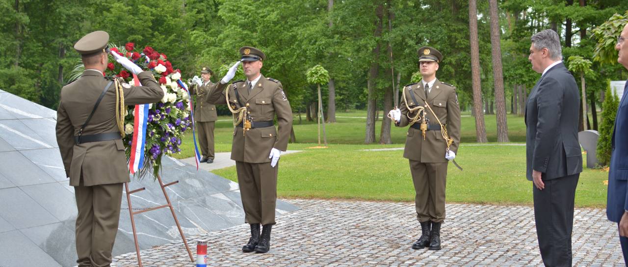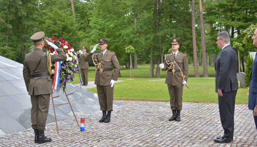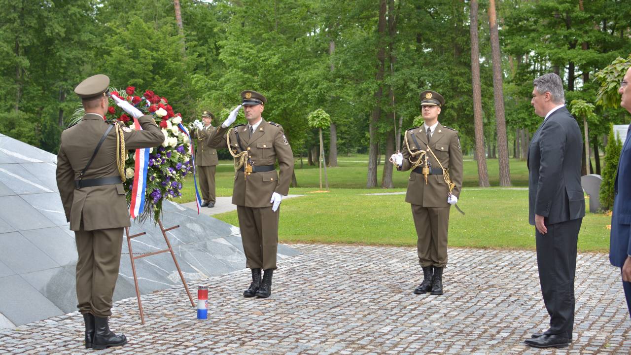 Hrvaški predsednik Zoran Milanović je danes v mariborskem Spominskem parku Dobrava položil venec k spominskemu obeležju.
