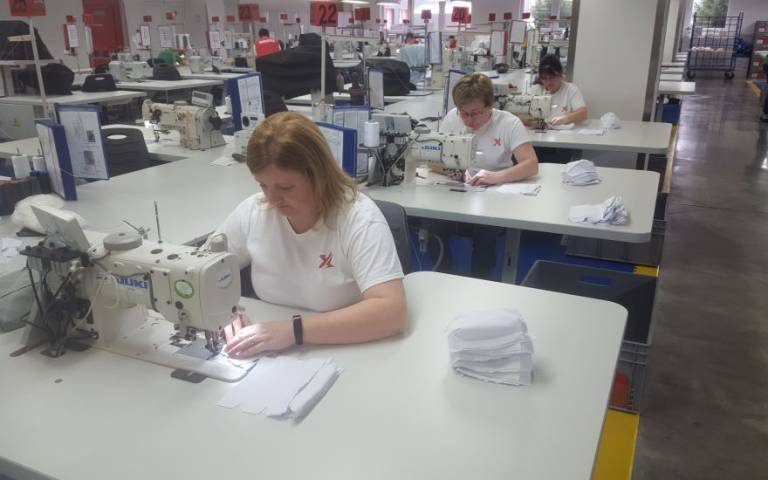 V Boxmark Leather je proizvodnja v celoti stekla danes. Tedensko bodo izdelali predvidoma okoli 40.000 do 45.000 zaščitnih mask oziroma okoli 5000 do 8000 na dan.
