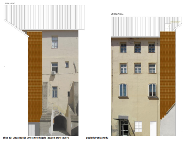 Investicija v dvigalo je rešitev. To bo umeščeno v severozahodnem kotu dvorišča, izvedlo pa se bo do tretje etaže.