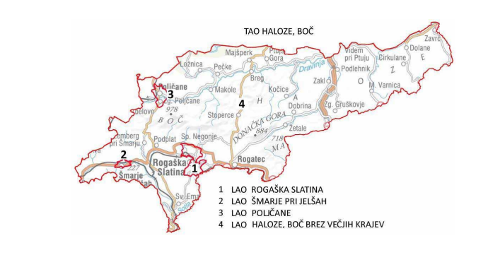 Geodetska uprava Republike Slovenije območje Haloz z Bočem deli na štiri območja, ki so Rogaška Slatina, Šmarje pri Jelšah, Poljčane in Haloze ter Boč brez večjih krajev.