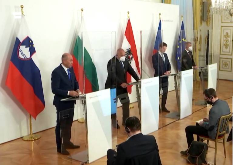 Včeraj se je premier Janez Janša na Dunaju pri avstrijskem kanclerju Sebastijanu Kurtzu udeležil delovnega sestanka, kjer se je šesterica premierjev zavzela za pravičnejšo razdelitev cepiv proti covidu-19 v EU.