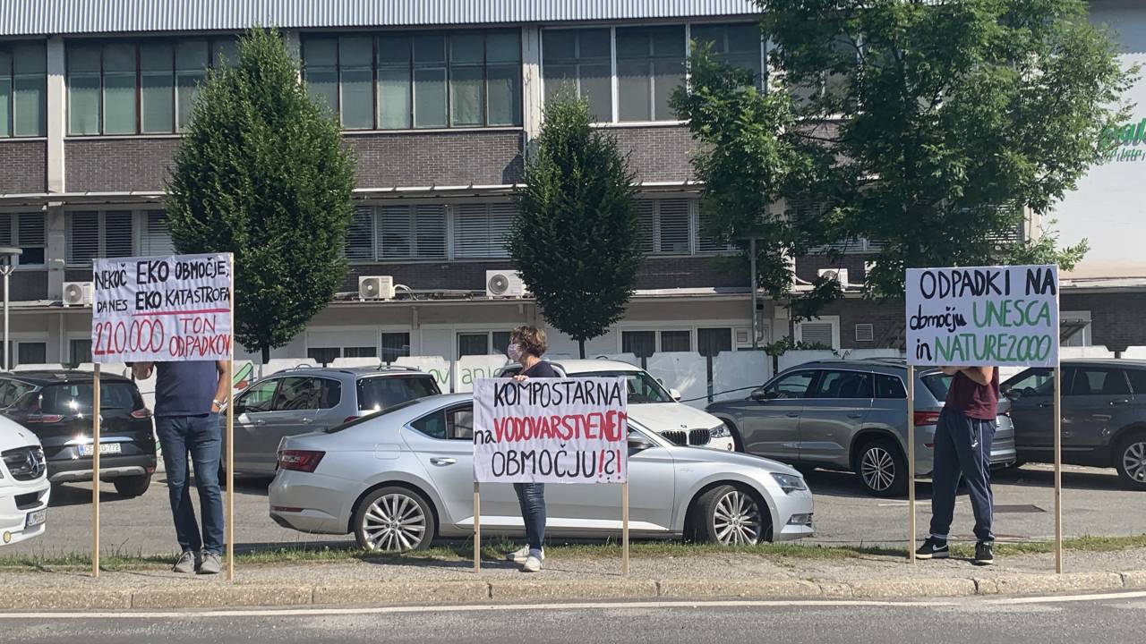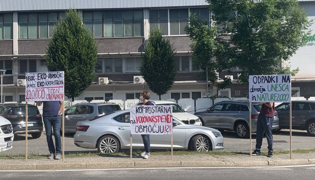 »Kompostarna na vodovarstvenem območju!?!« S takšnim in podobnimi napisi so ministra za okolje in prostor Andreja Vizjaka danes ob prihodu v Sladki Vrh pričakali domačini iz Ceršaka, ki jih moti delovanje kompostarne ob Muri.