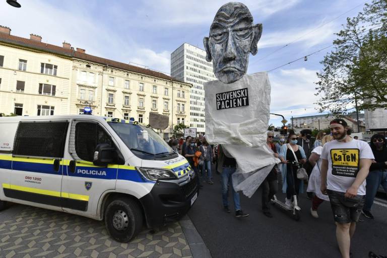Pozornost je pritegnila tudi velika maskota, ki je simbolizirala predsednika vlade, na njej pa je pisalo »slovenski pacient«.