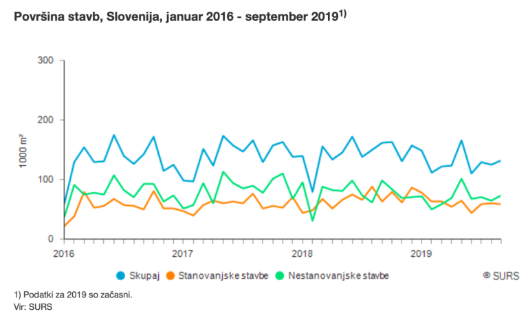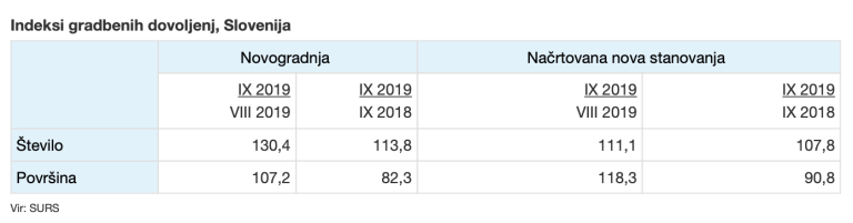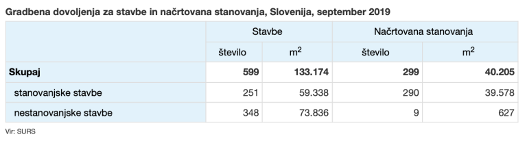 V obdobju od začetka leta do konca septembra 2019 je bilo z izdanimi gradbenimi dovoljenji načrtovanih za 2 odstotka manj stanovanj kot v istem obdobju prejšnjega leta, površina teh stanovanj pa naj bi bila manjša za 8 odstotkov.