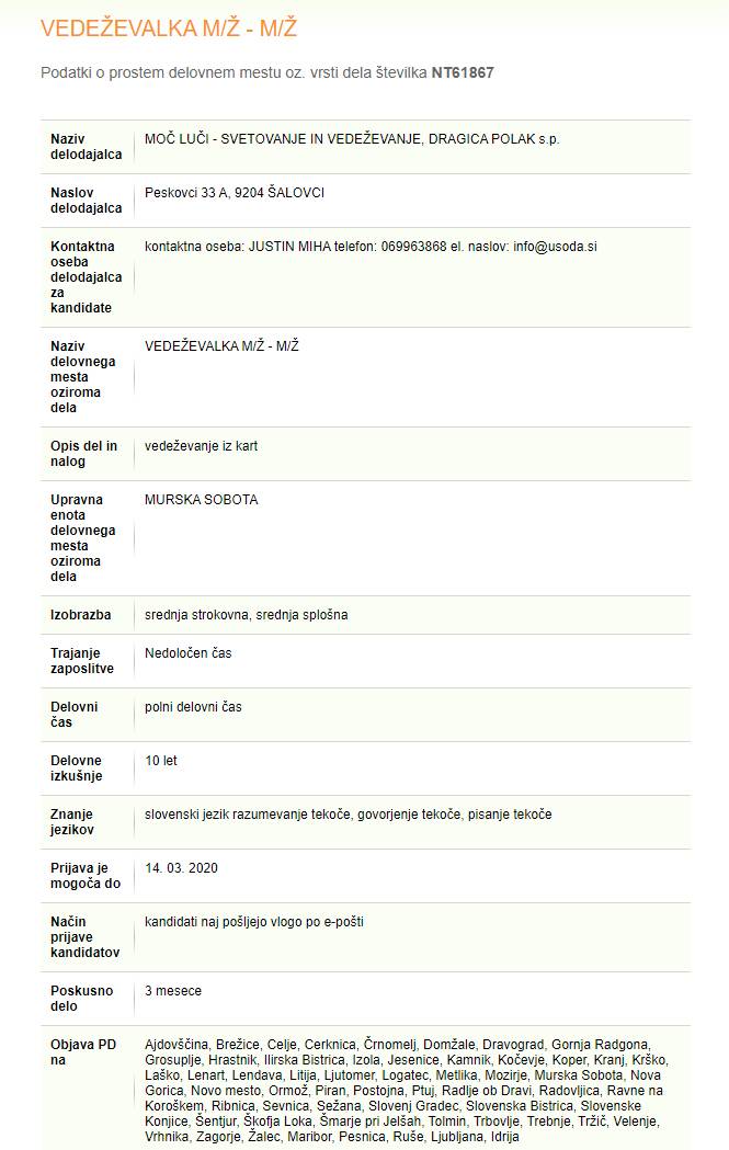 Kot je razvidno iz zaposlitvenega oglasa, naj bi delo potekalo na območju Pomurja, po naših virih sicer po telefonu, od doma.