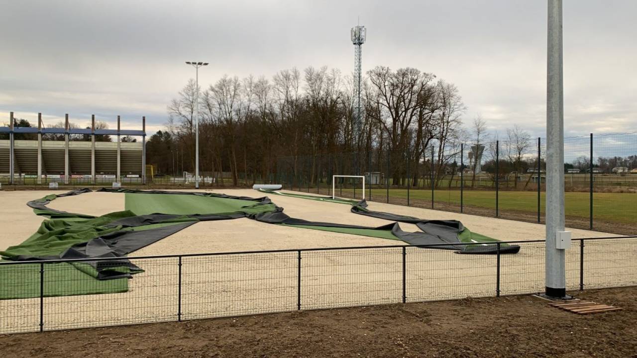 Silovit veter, ki je pustošil po Sloveniji, ni prizanesel še nedokončanemu igrišču z umetno travo.