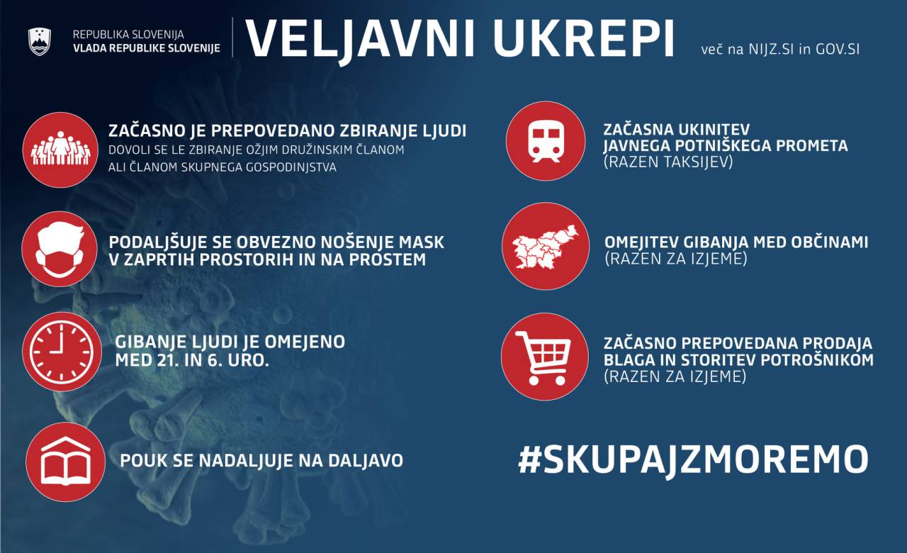 - Začasno je omejeno gibanje med občinami (razen za izjeme).