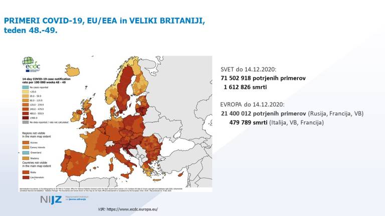Nuška Čakš Jager iz NIJZ je predstavila stanje v Evropi, kjer smo že presegli 21 milijonov potrjenih primerov covid-19, največ v Rusiji, Franciji in Veliki Britaniji. Umrlo je 480 000 ljudi, največ v Italiji.