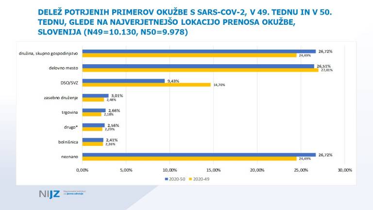 Ankete kažejo, da se največ oseb okuži v družini oziroma skupnem gospodinjstvu. Kot pravi Čakš Jagerjeva, se povečuje navajanje zasebnega druženja kot vir okužbe.
