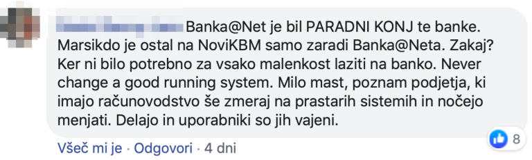 Ob vseh teh komentarjih smo se obrnili na Novo KBM, kjer ponavljajo, da gre »za največjo posodobitev v zgodovini Nove KBM - samo za občutek, število aplikacij smo zmanjšali s 170 na 80. S tem smo skrajšali mnoge delovne procese za naše zaposlene in v marsičem poenostavili poslovanje tudi za komitente, na primer z uvedbo podpisnih tablic v poslovalnicah. Banka se s tem usmerja tudi k bolj trajnostnemu, brezpapirnemu poslovanju.«