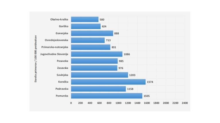 Na ravni države 14-dnevna incidenca na 100.000 prebivalcev trenutno znaša 963.