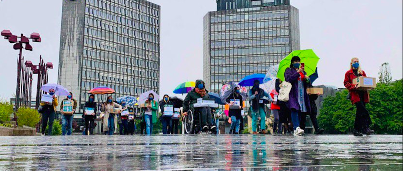 V državni zbor je gibanje prineslo 48.000 overjenih podpisov za razpis referenduma. Maja Koražija, članica Instituta 8. marec, se je zahvalila vsem delavcem in delavkam na upravnih enotah.