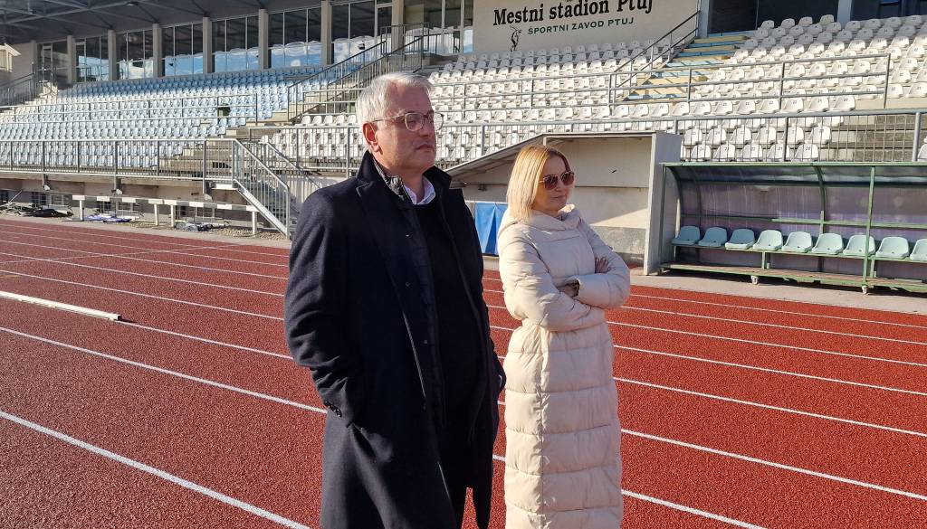 Minister za gospodarstvo, turizem in šport Matjaž Han si je danes ogledal potek del izgradnje atletske steze na Mestnem stadionu Ptuj, ki jo sofinancira ministrstvo.