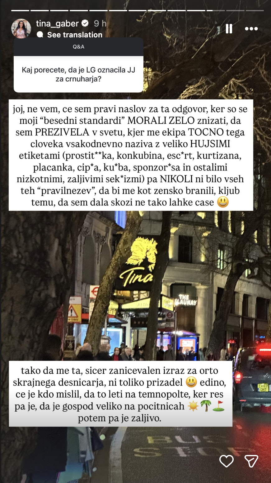Na dogajanje se je včeraj prek Instagrama odzvala tudi Tina Gaber, ki je na vprašanje sledilcev komentirala, ali jo je izraz, ki ga je uporabila poslanka, užalil ali zmotil.