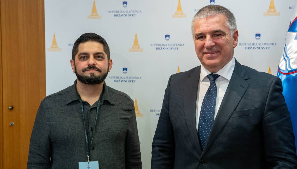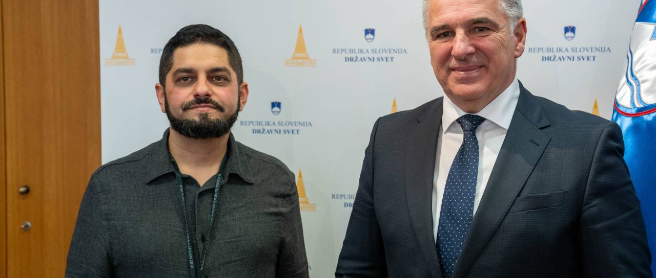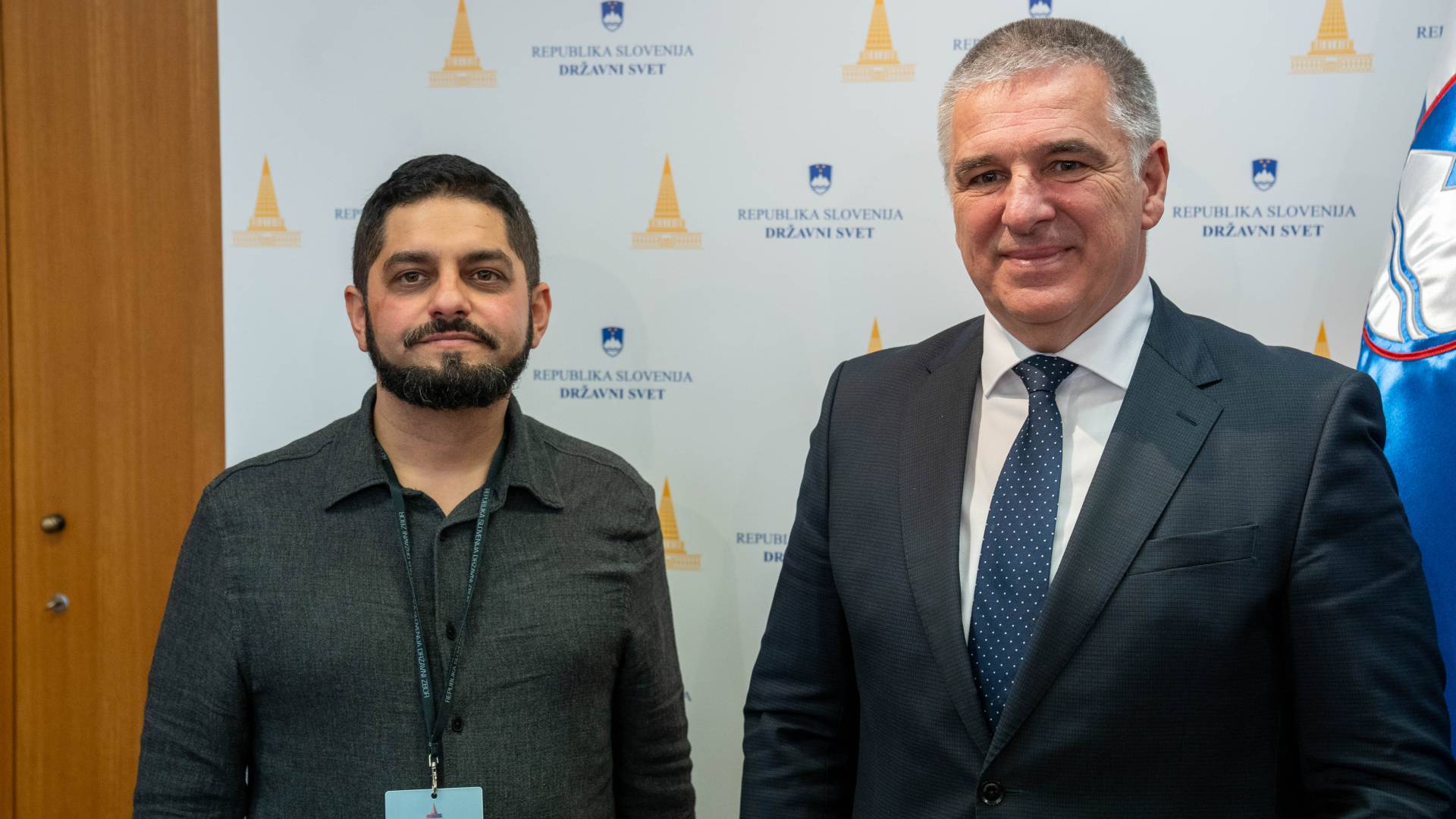 Predsednik Državnega sveta Republike Slovenije Marko Lotrič je v Ljubljani sprejel predstavnika romskega društva Sprememba takoj Murima Baftiara, ki vodi društvo, ustanovljeno decembra 2023 za pomoč romski mladini.