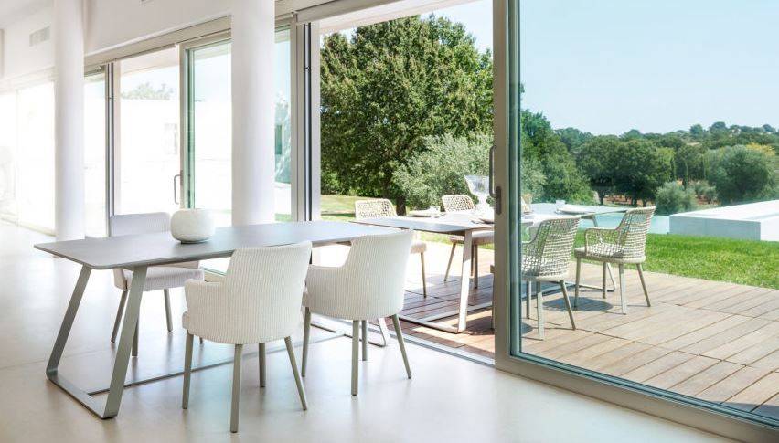 Tkanine z naprednimi zaščitami proti UV-žarkom, vodi in plesni, konstrukcije iz materialov, odpornih proti vremenskim vplivom, in modularnost, ki omogoča različne postavitve, so značilnosti pohištva, ki uspešno briše mejo med znotraj in zunaj.