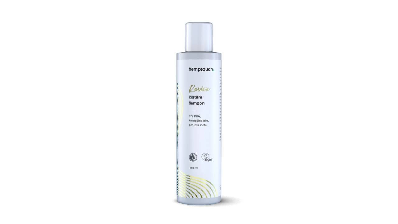 Revive čistilni šampon nežno, a učinkovito odstrani odvečno maščobo in obloge ter hkrati ohranja optimalno raven vlage v lasišču. Formuliran je na osnovi nežne kokosove osnove, ki ohranja zdrav mikrobiom lasišča, medtem ko konopljino olje in hidrolat zagotavljata vlago in prožnost.