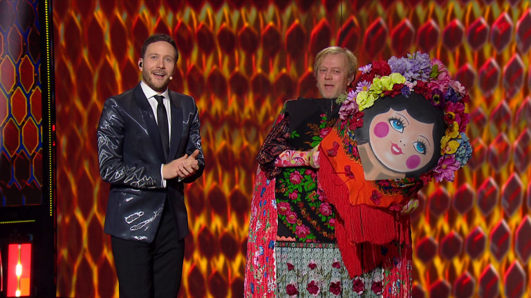 Že v petek sta zvezdniški ekipi razkrili masko laboda, pod katero se je skrivala pevka Alya, v nedeljo pa sta za novi presenečenji poskrbela igralec Matjaž Javšnik v vlogi babuške in voditeljica Valentina Plaskan kot slika.