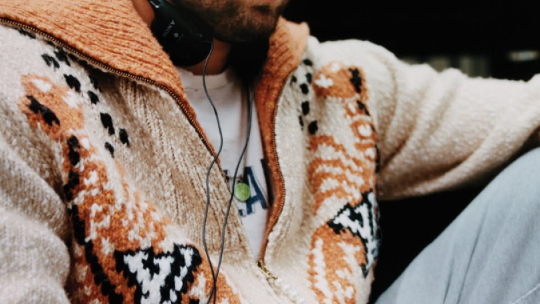 Na eni je Luka oblečen v sive hlače in bež volnen pulover, dopolnjuje pa jih pas z veliko zaponko. V rokah drži črno košarkarsko žogo, pogled ima uprt proti tlom. Na drugi sedi na klopci obdan z zelenjem, oblečene ima rjave hlače in rjav pulover, celoten videz pa dopolnjujejo nogavice svetlo modre in rožnate barve ter natikači. Okoli vratu nosi ogrlico, na levi roki pa večjo zapestno uro.