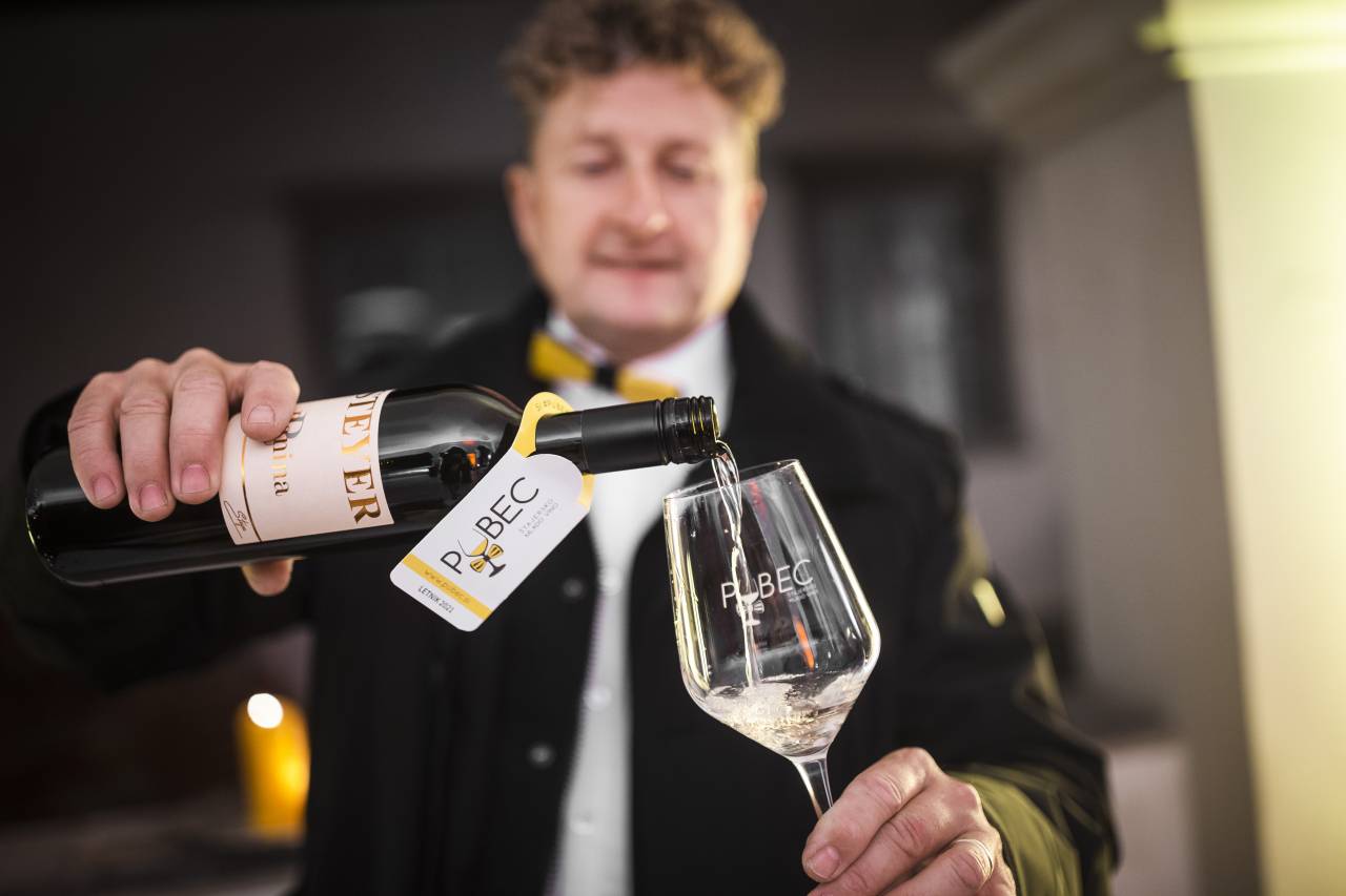 Mlada vina Pubec prepoznamo tudi po tem, da vrat steklenice krasi značilna obešanka z znanim rumenim metuljčkom.