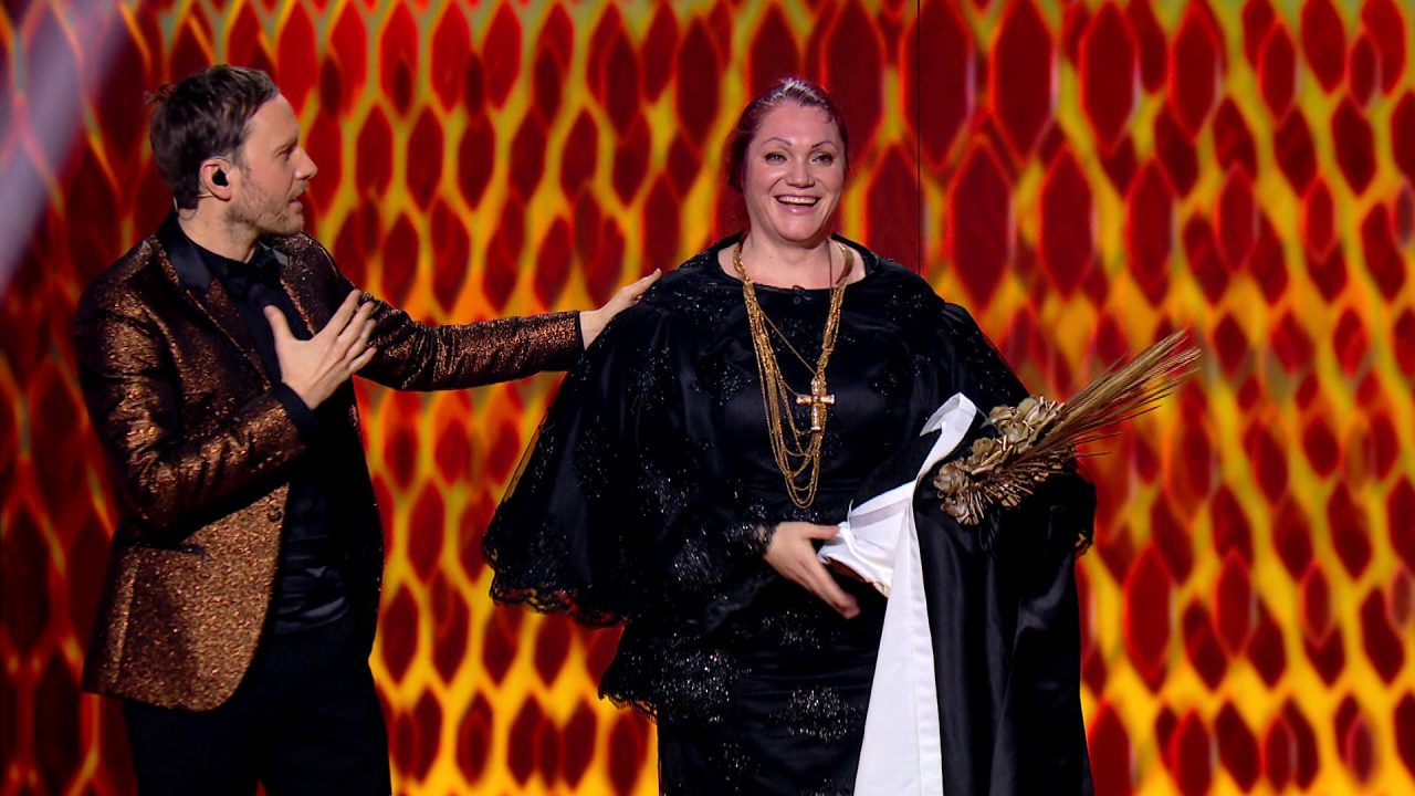 Čustvena polfinalna oddaja nas je sicer razveselila tudi z novim šaljivim nastopom voditelja Klemna Slakonje, ki je tokrat v priredbo pesmi Moj črni konj povezal vseh preostalih pet mask, med katerimi smo v polfinalu razkrili še dve. Že v petek smo spoznali, da odlični vokal, ki je prepeval v podobi skrivnostne nune, pripada Maji Založnik, prav tako navdušujoča pajkovka pa je bila Aleksandra Ilijevski.