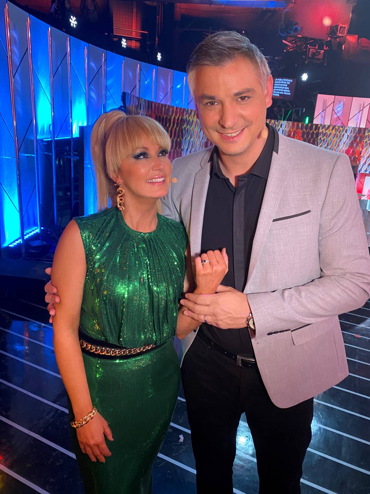 Dogajanje je docela presenetilo tudi ostale člane ekip, ki niso mogli skriti solz ganjenosti in so se srečnemu paru z iskrenimi čestitkami in objemi kmalu pridružili na odru.