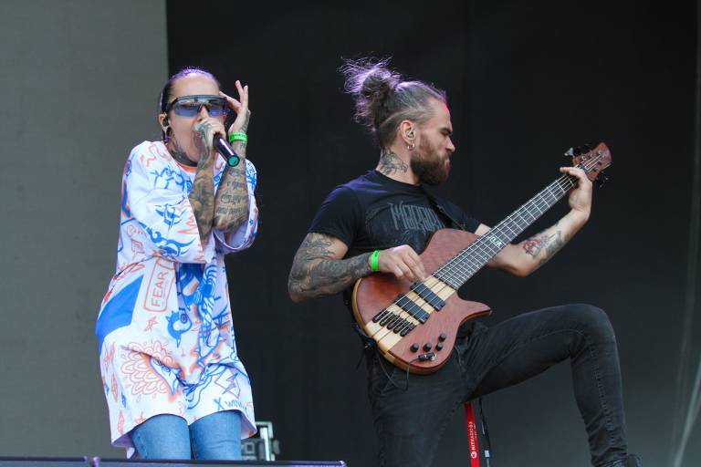 Sledila je ukrajinska atrakcija ekstremnega metala Jinjer s karizmatično Tatiano Shmayluk. Potetovirana punca, ki v hipu lahko spremeni glas iz »običajnega« ženskega petja v metalsko rjovenje (growl, op.a.), ob katerem deluje kot dr. Jekyll in gospa Hyde, je s tipično mešanico ženskosti in samozavestnega postopaštva zlahka razvnela predvsem moško občinstvo.