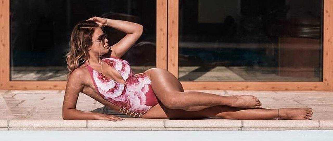 Sicer pa lepotica zadnje čase na Instagramu pogosto objavi fotografijo zavidanja vredne postave. Tik pred začetkom poletja je objavila fotografijo, na kateri sedi na skali ob morju ter pozira v enodelnih kopalkah z živalskim vzorcem.