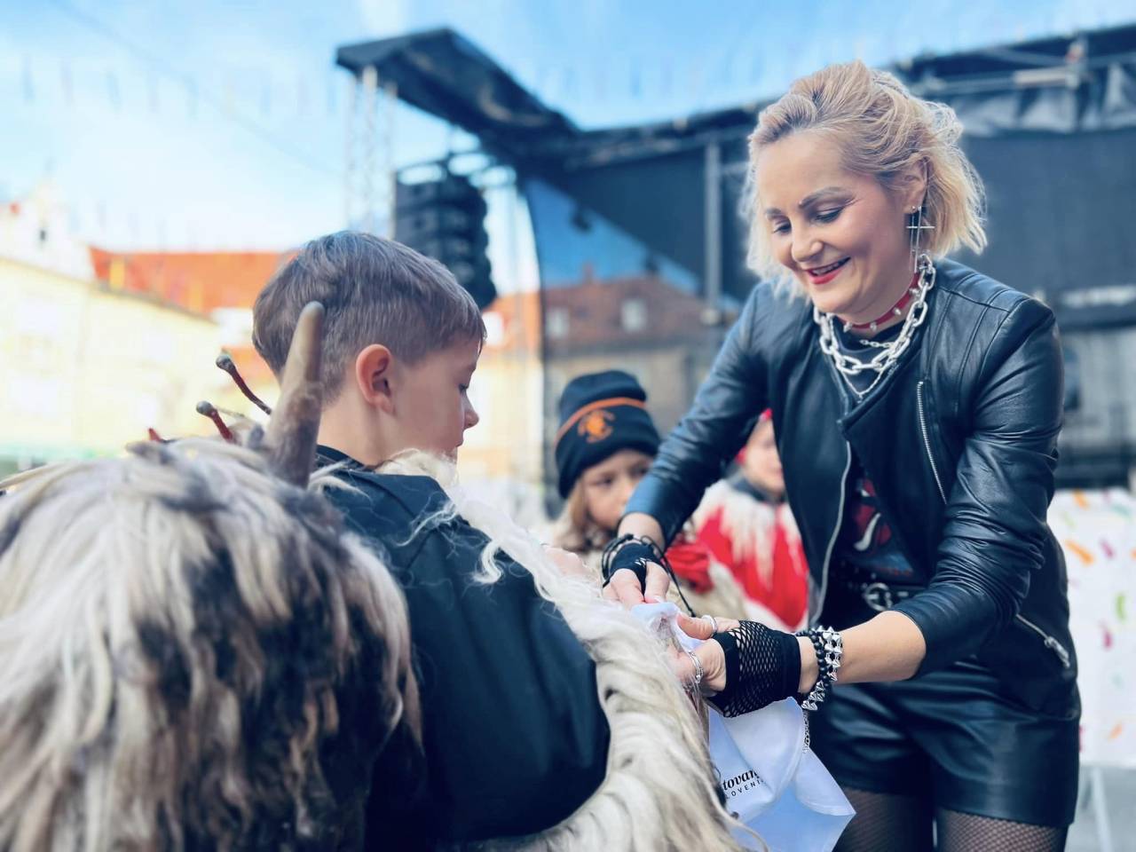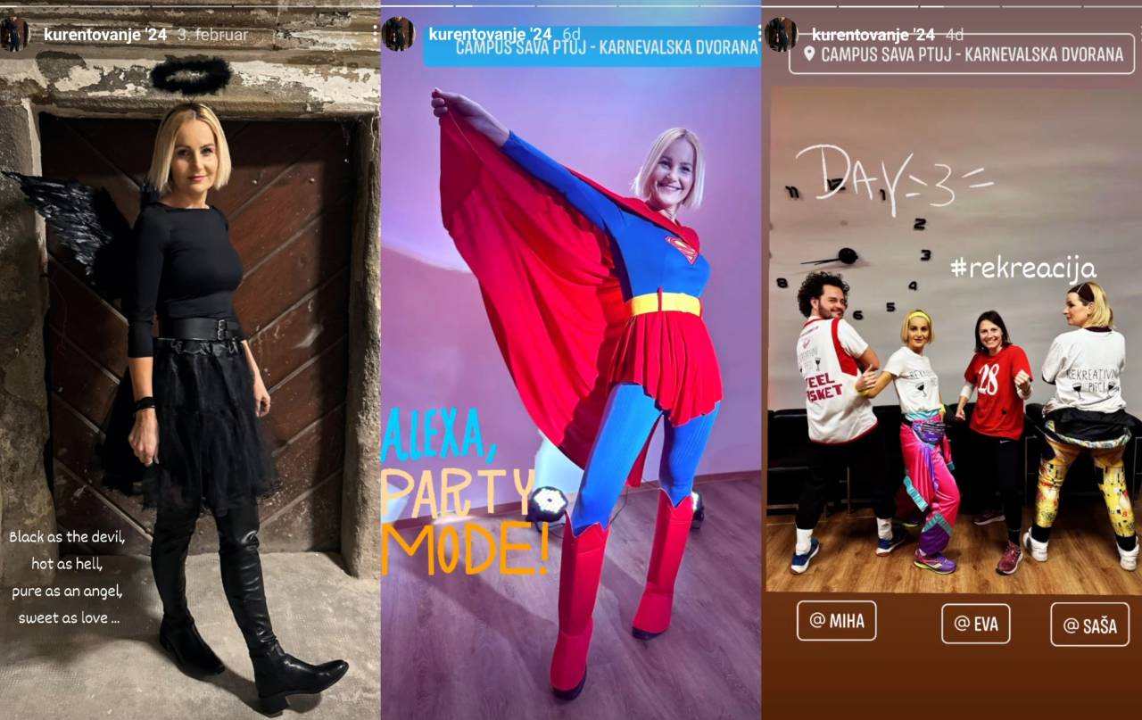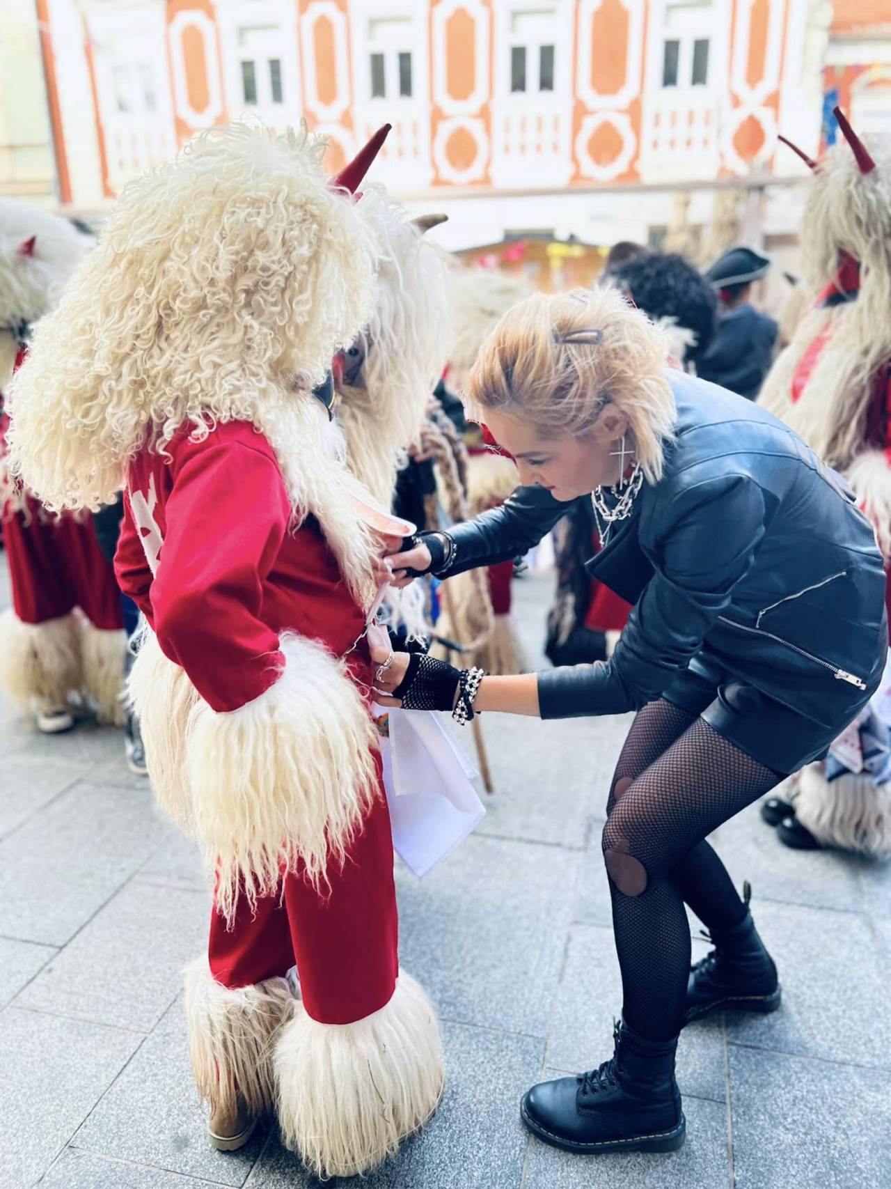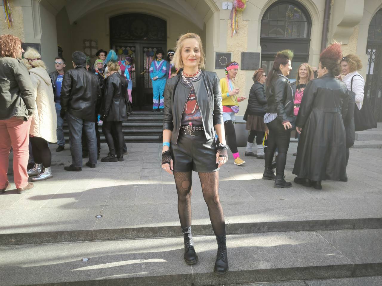 Mednarodne karnevalske povorke se je udeležila kot policistka, danes, na zadnji dan pustnega rajanja, je oblekla opravo rokerice iz 80-ih.