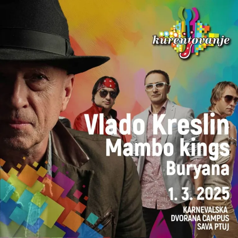 Ob 20. uri bodo ljubitelji koncertov lahko uživali v nastopih Vlada Kreslina, Mambo Kings in Buryane v Areni Campus Sava Ptuj.