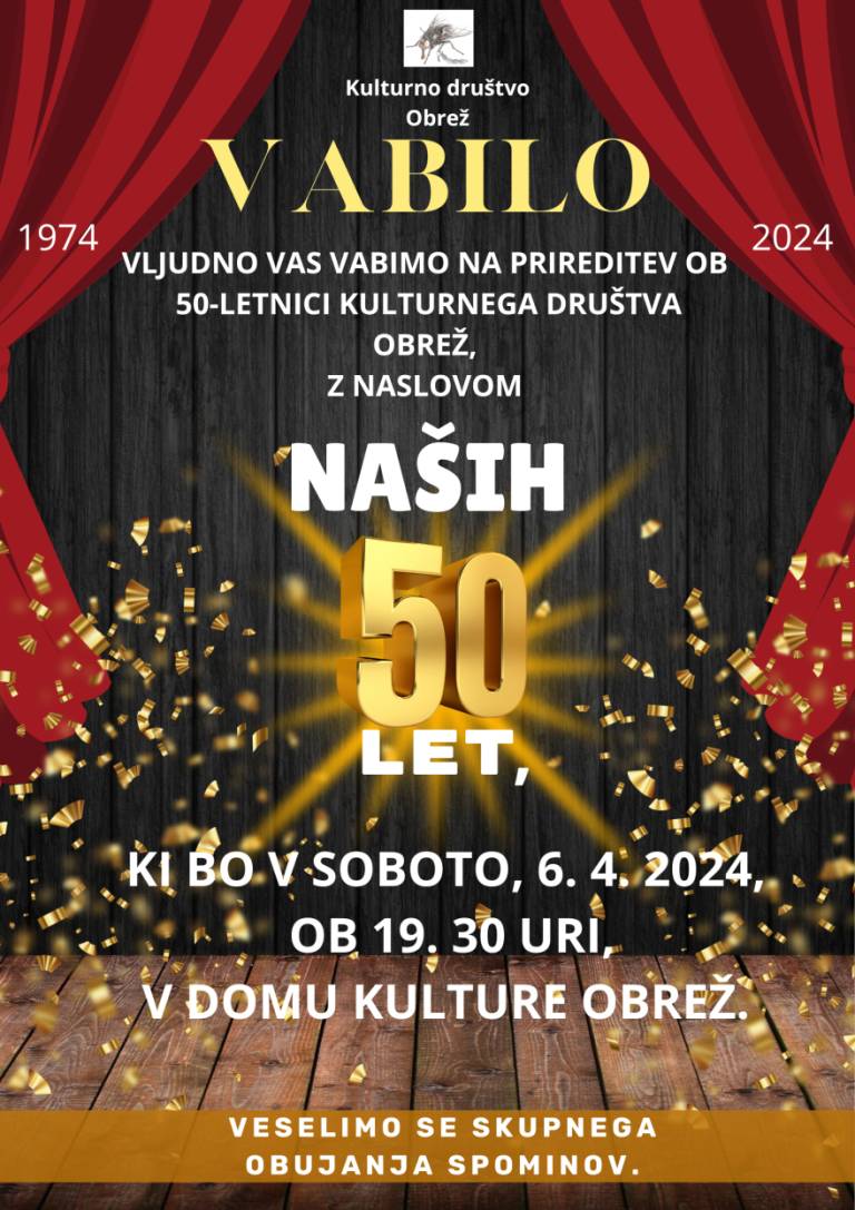 Kulturno društvo Obrež v soboto prireja slovesnost ob 50. obletnici, ki bo v Domu kulture Obrež ob 19.30.