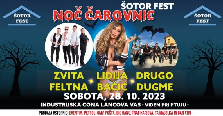 V Industriji coni Lancova vas bo ob 20. uri Šotor fest - noč čarovnic. Nastopili bodo Zvita feltna, Lidija Bačić in Drugo dugme.