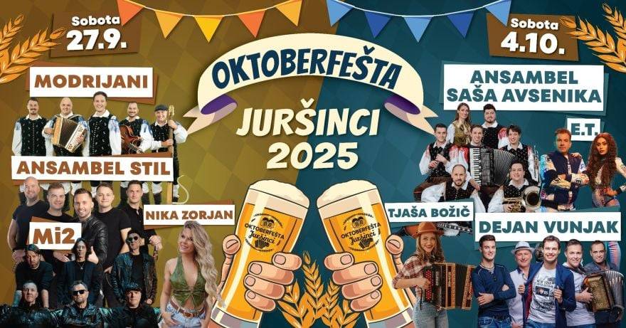 Istočasno bo v Juršincih Oktoberfešta 2025, kjer bodo nastopili Modrijani, Mi2, Nika Zorjan in Ansambel Stil – zabava pod velikim šotorom.
