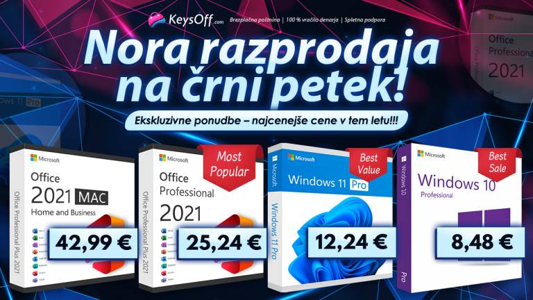 Keysoff Črni petek velika razprodaja je tu! Velika razprodaja zajema širok spekter kategorij programske opreme. Za samo 25,24 evra lahko pridobite doživljenjsko licenco za Office 2021 Pro! To je zagotovo dobra ponudba.