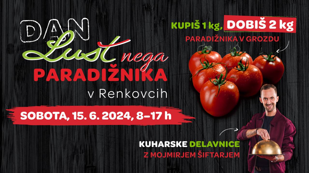 Ne zamudite Dneva LUŠTnega paradižnika! V soboto, 15. junija, od 8. do 17. ure, vas LUŠTovci vabijo na Luštno domačijo v Renkovcih. Pripravili so posebno akcijo: ob nakupu enega kilograma Grozdastega paradižnika LUŠT, dobite kar dva kilograma!
