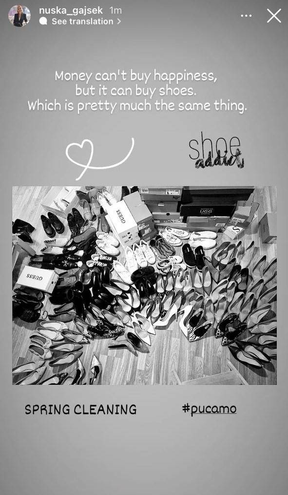 Županja Nuška Gajšek se je lotila spomladanskega čiščenja in pokazala zavidljivo zbirko čevljev.