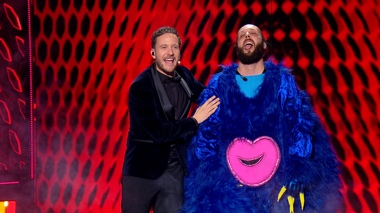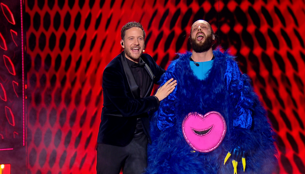 V nedeljo sta ekipi nato razkrili še dve maski in čeprav je Jasna Kuljaj menila, da se pod modro pošastjo skriva nekdo »s fuzbalerskimi nogicami«, jo je pod masko pravzaprav pričakal raper Emkej.