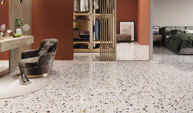 - Enostavno vzdrževanje: Teraco ploščice ne zahtevajo nobenega posebnega vzdrževanja – dovolj je že preprosto čiščenje z vlažno krpo in blagim milom.