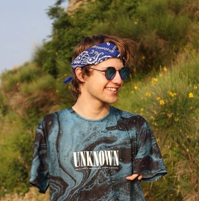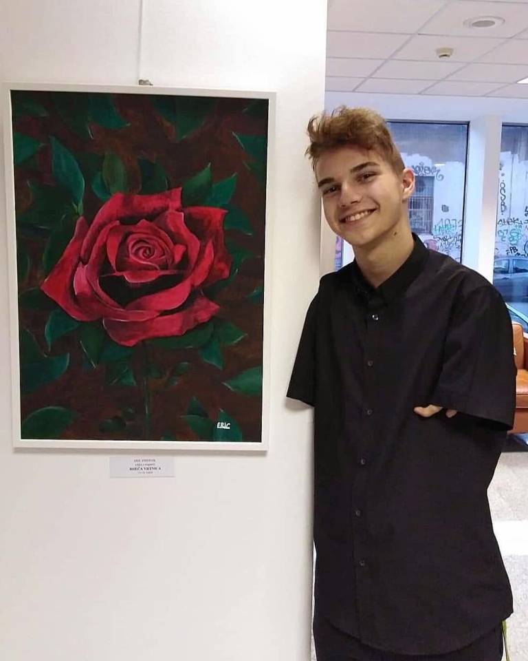 17-letni Eric prihaja iz Metlike in obiskuje 4. letnik Srednje šole za oblikovanje in fotografijo v Ljubljani, smer grafični oblikovalec.