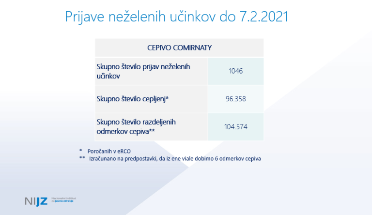 V februarju Slovenija pričakuje nekaj več kot 136 tisoč odmerkov. Do 7. februarja je bilo sicer cepljenih 2,6 odstotka prebivalcev.