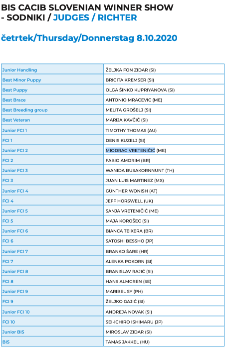 To je seznam sodnikov, ki bodo sodili na razstavi v Celju:
