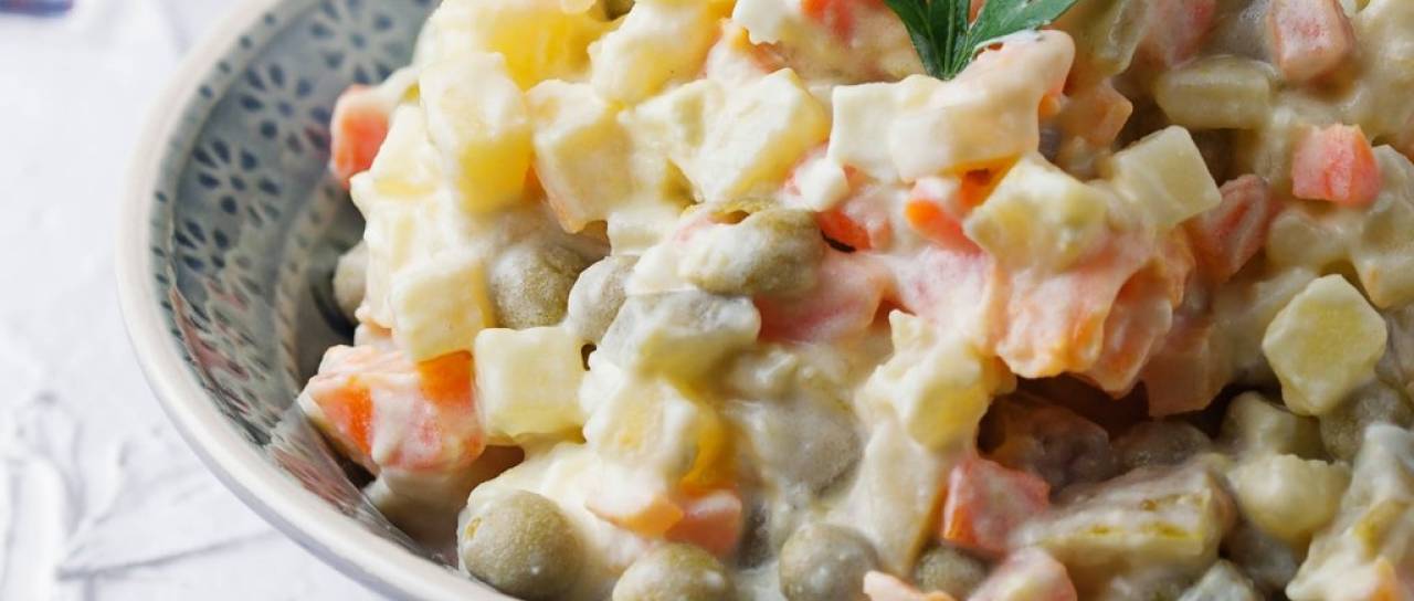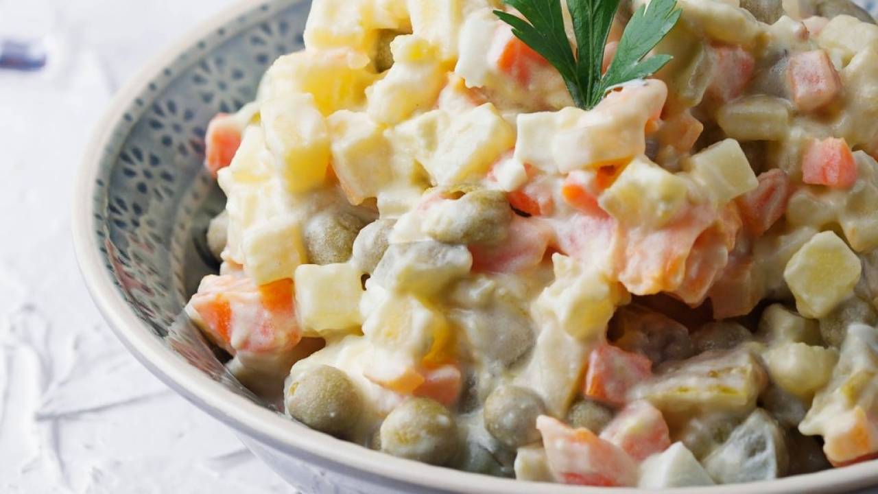 Za novo leto si mnogi radi privoščijo bogato zelenjavno-majonezno solato po imenu francoska solata.
