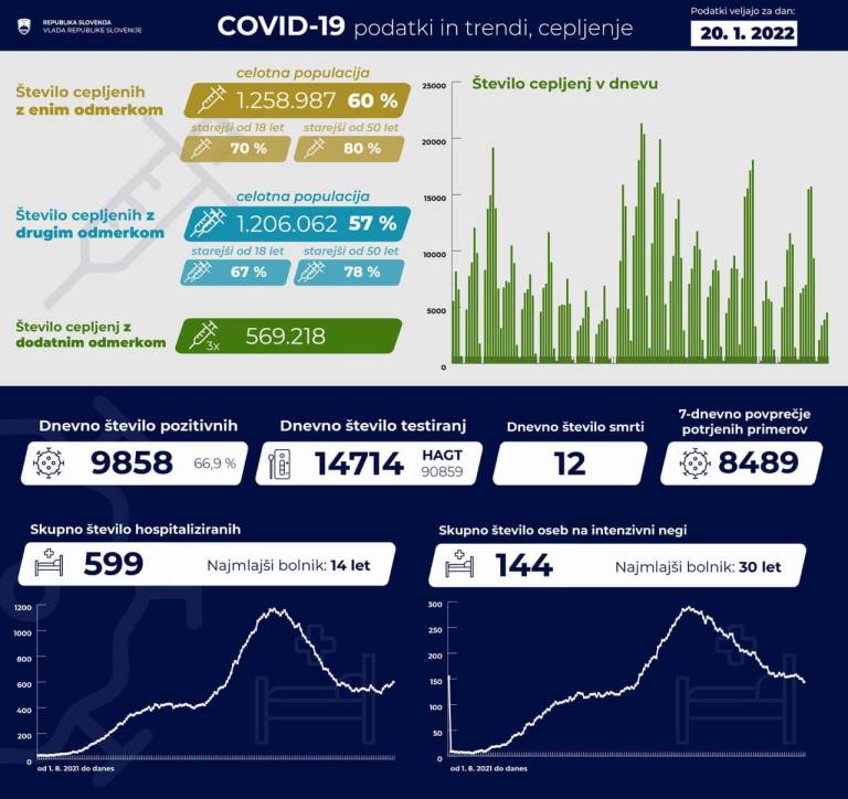 Trenutno je po podatkih Covid-19 Sledilnika v bolnišnicah hospitaliziranih 599 covidnih pacientov, od tega je 144 pacientov na intenzivni negi.