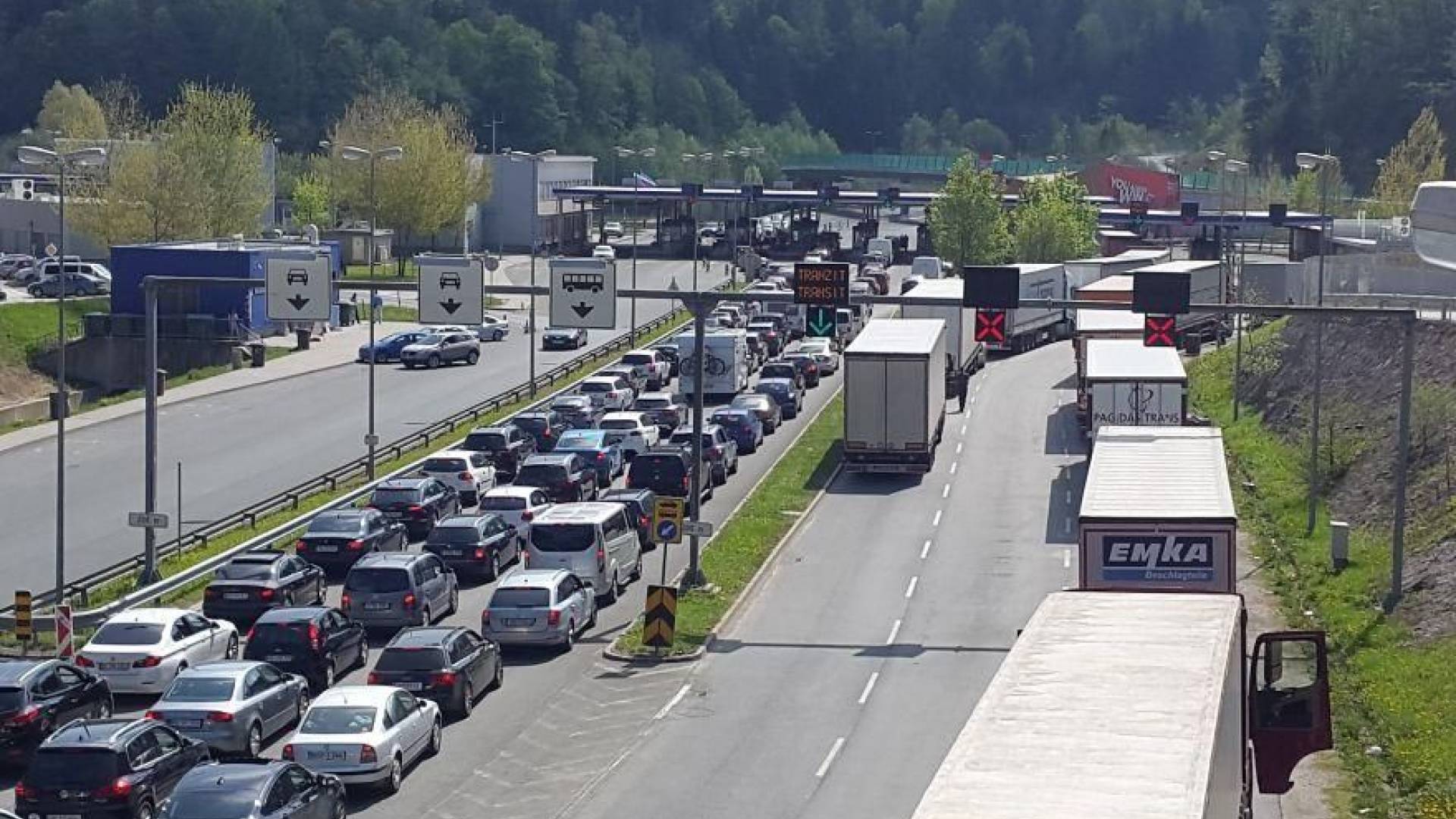 Za izstop iz Slovenije pa osebna vozila do pol ure čakajo na mejnih prehodih Sečovlje in Dragonja, do ene ure pa na prehodu Jelšane.