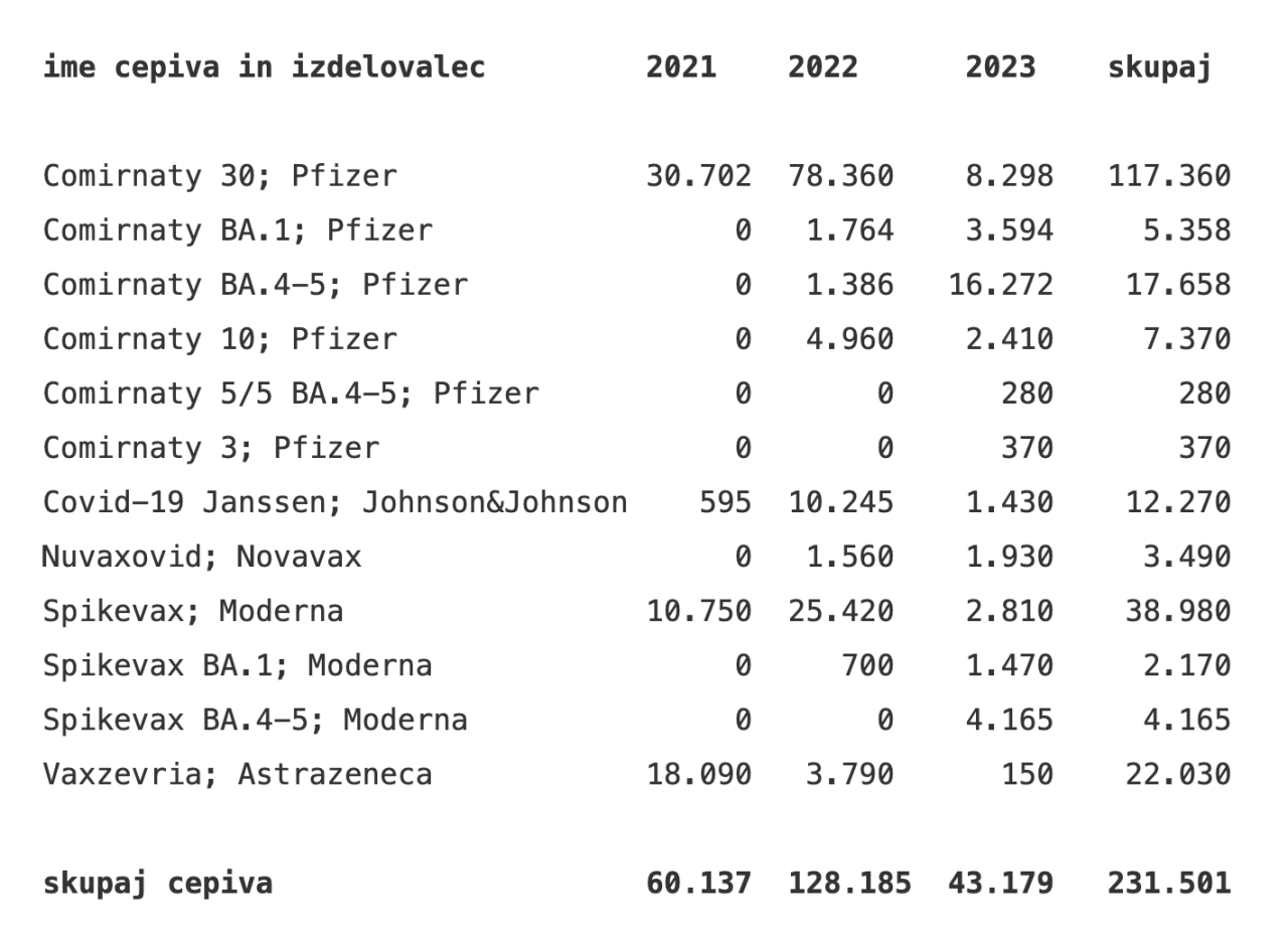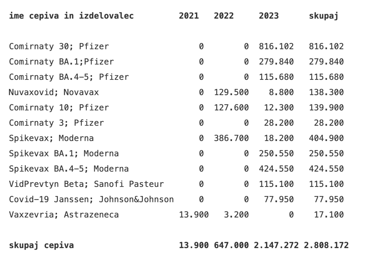 V Sloveniji doslej zavrgli dobre tri milijone odmerkov cepiv proti covidu-19.