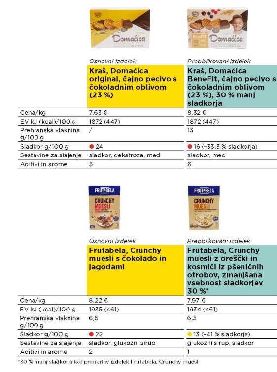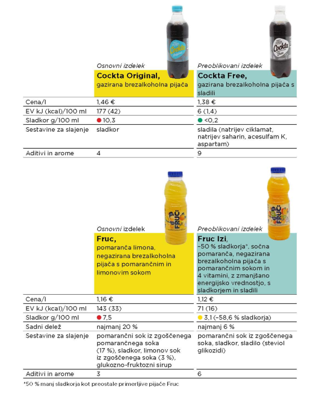 Izdelki z zmanjšano vsebnostjo sladkorja so posledica prehranskega preoblikovanja, s katerim proizvajalci sledijo Nacionalnemu programu o prehrani in telesni dejavnosti za zdravje 2015–2025. V Sloveniji se proizvajalci pod okriljem Gospodarske zbornice Slovenije prostovoljno odločajo za različne zaveze odgovornosti. Gre za prostovoljne zaveze, ki so po mnenju Zveze potrošnikov Slovenije sicer premalo zavezujoče in bolj naklonjene industriji kot potrošnikom, vendar so vsaj prvi korak v pravo smer.